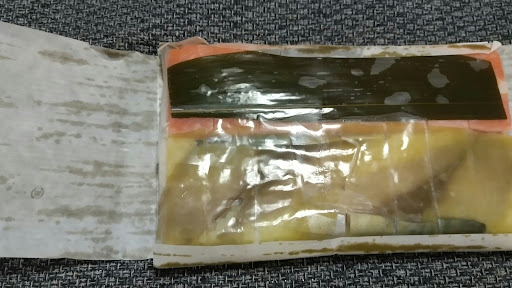 お持ち帰りで棒寿司3種、蟹・マス・おぼろ昆布(具は〆鯖) 2100円だったかな? ・蟹: かにの味がなんか薄いので冬場にもう一度買いたいところです。 ・マス: けっこう塩が効いててグラスビールが欲しくなる旨さ! ・おぼろ昆布(〆鯖): 昆布が絶妙の甘さをだしており旨い!!