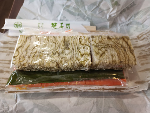 Read moreここは、押し寿司の持ち帰りがメインの寿司や。奥にイ−トインのスペースがあります。中に入ると、ショ−ケ−スに押し寿司が並んでいます。サバ、鱒、カニ、穴子があります。サバ570円と鱒620円を注文。税込みです。注文を受けてから一口サイズに切って包んでくれます。シャリとタネはいずれも酢が弱めで旨味が感じられます。とても美味しい。他のも食べたくなります。ボリュームはそれほどありませんので、パクパクいけます。なお、ここは、go...