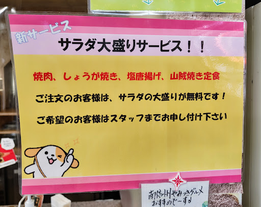 202409月現在情報です。 スマートIC降りても付近に食事場所がないので、こちらで朝食頂きました。 キャンプ地やパラグライダー等のアクティビティがある為ここで高速を降りる場合が多い方、ちょうど朝ごはん時間に通過する場合の方は、是非利用してみて欲しいスナックコーナーです。 駒ケ岳サービスエリアというお隣さんに霞んでしまう休憩所ですが、朝ごはんをしっかり食べたいなら絶対ココ!! 11:00までのモーニング定食のコスパは最強です。 今時高速道路上で高くても650円という定食に、ご飯大盛りサラダ盛り無料とは!!! 下道にしか存在しない昔ながらの定食屋ですか!!!と思うほど。 お味は飛び切り美味しいという訳には参りませんが、よっしゃこれから1日頑張るぞ!というお腹には満ち満ちる量を提供してくれます。 訪問したときは売店も厨房もをお年の大きいお二人が回していたため、提供時間に多少差が出たりしましたが、ちゃんと「すみませんがこういう事情で時間かかります」看板出してくださっていますし、時間に余裕がある旅人はそれすらも懐かしく楽しめると思います。 また、朝定食時間すぎてからのメニューでも、肉料理は一押しらしい地元住民情報。 次回利用したら、そのオスス...