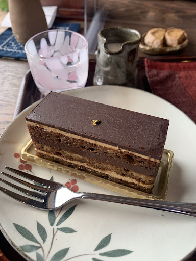 Read moreバラ園を訪れたついでに寄り道。駐車場あり。 オペラと炭焼きアイスコーヒーを注文。 オペラはちょうどいい甘さのケーキ。430円(抜き) ブランデーかラム酒のアルコール抜いたシロップかな?がヒタヒタにスポンジに染みていて、食べる時に肉汁のようにジュワっと出てくる。コーヒーによく合う。 炭焼きアイスコーヒーは、550円(抜き)シロップもミルクも入れなくても少し甘味を感じる。甘党の私もブラックでいける。酸味はなく、コクと香りがいい。 器にもこだわりがあり落ち着いた雰囲気で、くつろげる大人の空間。今のご時世、もう少し席を空けるか、隣席とのパーテー...