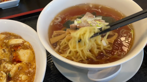 麻婆丼+半ラーメンセット880円(税込)を注文。 おお!めっちゃ良い感じの見た目の麻婆丼出てきた♪山椒が効いてます(*`艸´) ラーメンはバーミヤンラーメンに近いかも!昔好きで良く食べに行ってたな~(^o^)