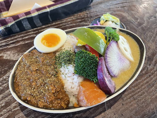 Read moreカレー目当てに家族と行きました。とても美味しかったです。 私が食べたのはスープカレーとドライカレーの盛り合わせ。山椒と食べるドライカレーは初めてでしたが、とてもクセになる味で美味しかったです。スープカレーもクリーミーで美味しい。全部美味しい! ドライカレーは味が濃くて山椒が、スープカレーは鷹の目がたくさん入っているのでお子さん向けではないかな?(私自身は辛いとは思いませんでした) 料理の提供速度は早い方だと思います。 店内の席が、他の人と目を合わせないような配置で居心地が良かったです。 お店の天井が吹き抜けで、天気は良い日でしたが冬なので店内は少し寒かったです。暖かい格好で来られることをオススメします。 お店までの道は少し狭くて、うっかり通り過ぎそうになると思います。窓から外を見ていたら、慌ててブレーキをかける車をチラホラ笑。駒ヶ根方面から来られた場合はうっかり通し過ぎても第2駐車場があるのでいいですが、伊那方面から来る人は通り過ぎたら大変です。 看板猫のみーちゃん(男の子らしい)がいて、とても可愛かったです。既に何度か来ていた家族は店員さんとお話して、外で日向ぼっこしているみーちゃんをお触りしてました(私は見てただけ) とても人慣れしていて名前を呼ぶと鳴き返してくれます。可愛い。家族から聞いた話だと店内にみーちゃん用のコタツがあるらしい...