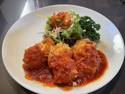 お店がオープンした直後に何回か伺った時は、オムライスやパスタなど塩味が強く、伺うのをやめていました。今回、クリームコロッケ目的に伺いました。平日はディナータイムのみ、土日はランチタイムも食べられます。 熱々で提供されたコロッケは粗いパン粉が厚め、ソースがかかった部分はふやけてしまい食べにくいのと、せっかくのサクサク感がなくもったいなかったです。中身にも塩味があるので塩味も強めに感じました。カニは一応入ってたので高いのはわかりますが、少し高すぎでは−300円でよいかも。ご飯は保温釜でも時間が経った味、味噌汁は赤だしで小さな豆腐1個、大根2切、超細かいネギが入ってました。漬物は塩昆布漬け。 この日は夕方はお店の方のお一人で対応していて、お支払い時、他にお客様がいないのに何回呼んでも気づいていただけず、厨房まで行き声掛けをしました。 メニュー数が多く、パフェやケーキ、カクテルなどのドリンクもあります。土日が賑わうお店なのかと思います。 支払いは、...