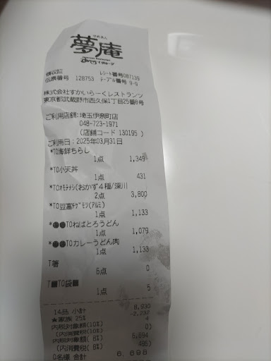 Read more対応してくれた店員さんの接客がとても気持ち良く、食事が楽しかったです。特に、こちらが注文したいタイミングで「何か注文なさいますか?」と、声をかけてもらえた時には、ちょっとした日本旅館に来ているような気分にさせてもらいました。 また、夢庵でしゃぶしゃぶ食べ放題が土日でも1,680円で楽しめるなんて、もっと早く知っていれば良かったと後悔しました。+500円でプレミアムプランにでき、天ぷらを始め、シュウマイ、温玉つくね、サラダにネギトロ丼など、ちょうどいいバリエーションのメニューが食べ放題になり、しゃぶしゃぶ以外でお腹いっぱいになってしまう、とても満足できるお得なコースだと思います。 しかも、食べ放題なのに味は普通のグラウンドメニューと同じです。 また行き...