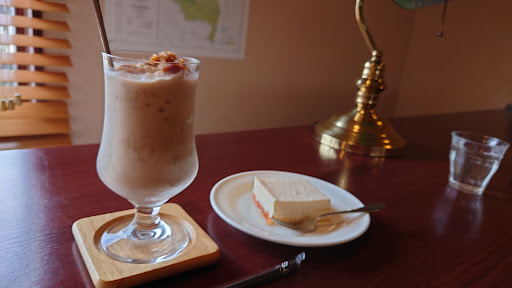 Read moreこの地には詳しくないが、友人から『美味しいよ』と聞いて、早速お邪魔してみた。 1階左手の階段を上がるとそこはまるで別世界。 空間全体がモカブラウンに統一され、その見事なカラーコーディネートが寛ぎ感を与えてくれる。 熱い中歩いて来たので、冷たいもので喉を潤したい気分。 頼んだのは[グラニータ]と[レアチーズ] グラニータは、氷の中にギュッと閉じ込められたコーヒー本来の旨さが、タップリのミルクで多少控えめな主張にはなってしまってはいるが、兎に角乾いた喉に嬉しい。 レアチーズケーキは、他所で作っているとのこと。 口溶けの良い滑らかな舌触りで上質な味だが、個人的には風味豊かなレモンの味がもう少し前面に出ている方が好きかな。 慌ただしい日常だが、ほんのいっときでもこうしてゆったりと落ち着いた空間で嬉しいひと時を過ごすことができた。 コーヒー豆には詳しくないが、次回は是非とも店主お勧めの拘りの一杯を...