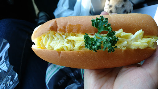 【1回目】 日曜日の午前10時過ぎに来店。 お客さんが次から次へと来ますので、人気店ですね。 他で売っていなそうな、沢庵パン税込169円、ラーメンドック税込296円、ハッピーフレンチ税込170円を購入。 沢庵パンは、刻んだ沢庵にマヨネーズを和えたものをコッペパンに挟んだもので、沢庵の食感はパリパリしています。 ラーメンドックは、ラーメンをコッペパンに挟んだもので、メンマとナルトとゆで玉子も乗っていて、味は醤油ラーメンとパンをそのまんま一緒に食べている感じです。(笑) ハッピーフレンチは、たぶん前日に売れ残った甘い系のパンをぶつ切りにして、生クリームをトッピングしたもので、色んな味のパンが食べられ、...