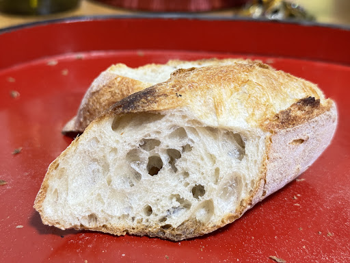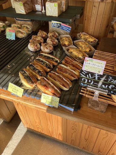 来てみたのはたまたまSNSでカンパーニュをおすすめしているのを見たためで、パンは菓子パンや惣菜系はまあどこの店でもそれなりにおいしいのですが、材料がシンプルなパンでその店の特徴が分かるかなと思ったのが理由です。 ちょうど最近、同じ町内で以前は自店でも販売していた「はるこま」という店の田舎パンという、やはりカンパーニュ系のパンを食べて気に入っており(現在は、町内のJA農産物直売所「四季彩館」でたまに買えます)、食べ比べてみたいと思いました。 こちらのカンパーニュははるこまの田舎パンに比べると、しっとりもっちり感が強めで、水分が少ないパンが苦手な場合はこちらのほうが良いかもしれません。 SNSで出ていた通り、若干酸味を感じる風味で、中は茶色がかっていて、茶色度ははるこまの田舎パンより強め、おそらく全粒粉を使っているのではないかと思われます。 はるこまの田舎パンは包装に小麦と塩と米麹のみの材料表示があり、消費期限は何となく4日間程度のようですが、こちらのカンパーニュは店で裸で売っているので、材料や期限は不明です。 しっとりしているので、なるべく当日か翌日あたりまでには食べたほうが良いのではと思います。