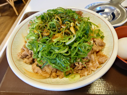 再訪 前回と同じく、平日8時頃訪問。店員さんは女性2人、お客様は例の常連の方のみ。この静かな時間がいいなあと来店2回目のまぜのっけ朝食に塩サバをつけいただきました。サバは蒸してある感じで塩加減がちょうど良く臭みもなく、おいしかったです。すき家の朝食、おすすめです! 店内、清潔感はありますが、ひとつ難点あり。器や紅生姜の容器周りがキレイに拭かれてないこと。食品クズが付いていました。 カウンター席10席、テーブル席4...