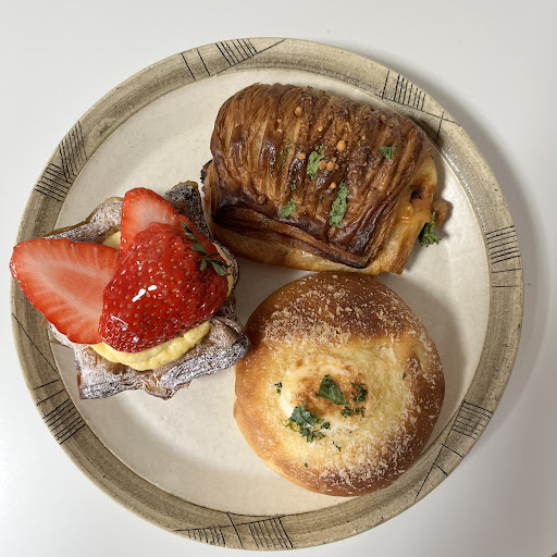 トマトと大葉とベーコンが入ったメッシュというパンは初めて食べた時に衝撃を受ける美味しさで、一緒に行く友達も必ず買って帰ります。 デニッシュは季節によって色々な種類に変わりますが、どれもフルーツたっぷりで、クリームとの相性抜群です。 たまごぱんは中までたっぷりたまごが入っています。家に帰ってからトースターで焼き直すと美味しさ倍増します。 チーズベーコンのフランスパンも大好きです。先日たまたま焼きたてのタイミングで購入した時はさらに美味しかったです。