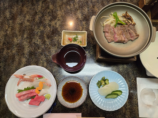 今回は忘年会で利用しました。 お刺身の鮪やイカはトロトロでした。 ステーキも、なに牛か忘れましたが 今年1番やわらかいお肉でした😋 ボイルカニ(かにみそ付き)や 脂ののったサバ焼き・1本まるごと ジャンボエビフライ・鹿島産の はまぐりがスゴ~くやわらかく😆 今まで食べたハマグリで1番 美味しかったです🤭 お寿司とカニ入り味噌汁 アイス苺添えのコースはどれも 非常に美味しかったです😋💕 ま...