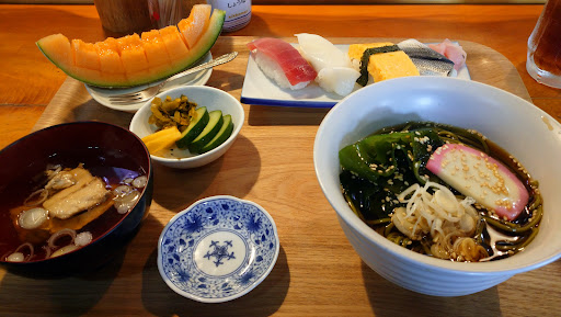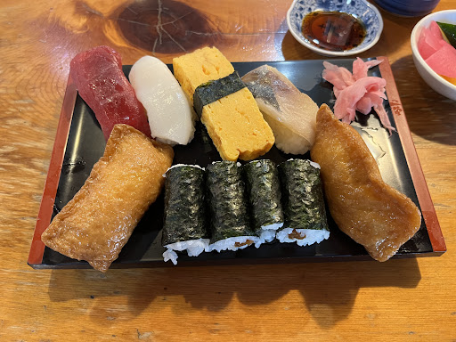 Aランチ@660 ★★★★☆ このご時世で税込660という破格ランチ 海苔巻きはかんぴょう おいなりさんが2個付いてたり 値段なりと感じるかもしれませんが美味しいです。 ランチは回転寿司価格とはいえ 本物寿司屋なので海苔1つとっても上質、食べれば分かります。 本物の板前が握るお寿司は一味も二味も違います。 美味しいお吸い物 美味しいきゅうりのぬか漬け シャリの大きさ全体的なボリューム デザートまで付いてこの値段なら満点