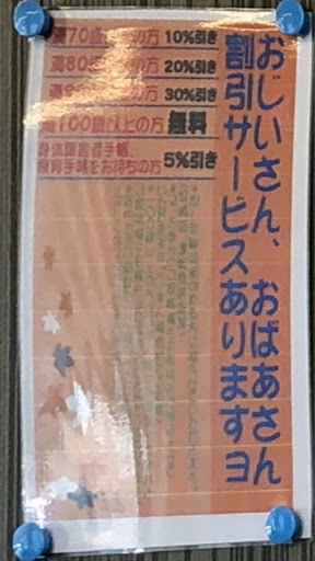 昨日の晩ごはんを食べていなくて、18歳以上の学生さんで、食事代のない方は無料! 小学〜高校生までの方で、80点以上のテストを見せれば特製コロッケ1個無料! 在留カードを持った外国人さんへの割引あり! 70歳以上 10%引き 80歳以上 20 %引き 90歳以上 30...