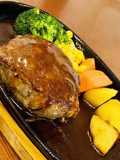 ステーキ🥩は分厚っついかたまりが『ドーン‼️』って感じ、デミグラスソースがかかったステーキはレアでサイコー😆