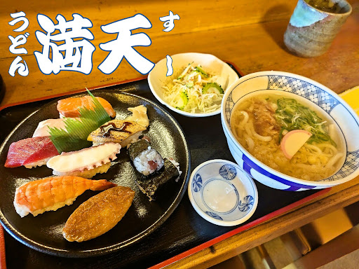 サラダ、うどんが付いてきました。 お値打ちランチとしては、ネタは厚くプリっとして旨い。エビの違いが解りやすいですね。シャリは、フワッと握られて口の中でほどけます。稲荷、コレ良い。甘さ控えめで、ジューシー。米もフワッとして、いくらでも食べれます。 サラダに紫蘇のカットした物があり、熱い時期にサッパリした感じが出て良い。 うどん、コレはオマケかと思いきやモチモチ感が強く美味しい。生姜が入ったツユで、夏にはピッタリ。