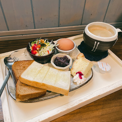 2021.10/2…初来訪、店名がステキ♥、建物もステキ♥、店内もステキ♥。 ワッフル(14:00以降オーダー可)は 私好みの生地、生クリームもたつぷり。 しかも、社員マスカットと(恐らく)長野パーポーも添へられる。 (恐らく)胡桃のパウンドケーキ、フライビンズも付いたプレート。 大してメニューブックをチェックせずに、カフェラテをオーダー。 しかし 後で、スマイルマークのラテアートの珈琲が有るのを知り、プチ後悔。 でも、充実したカフェタイムを楽しむ。