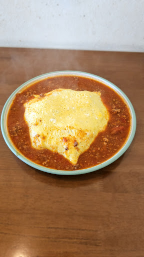 Read more店はひっそりとした感じで、7〜6席くらいだったでしょうか😂トイレはウォシュレットでキレイでした。 相方が注文したのはカルボナーラ、あっさりとした味じで良かったです。 私が注文したのが、ミートとナポリタンの両方が味わえる…名前は、忘れました(-_-;)海鮮ナポリタンに卵が被せてありその周りをミートソースが取り囲んでいます。一見少なめに見えますが、大食らいの私で腹7分目で、ちょうどよい量でした。メニューに確か値段はなかったのですが支払いのときに1500円位?少々お高めでした。店のご主人は気さくな感じ...
