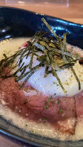 ‘22/12月 今回はランチに訪れました🍴 ◆(月替わりランチ)ローストビーフ丼¥1,490 ◆(セットドリンク)アイスコーヒー ◆(セットデザート)カヌレ•プレーン¥130 ローストビーフ丼をとろろと温玉でいただく🥢 丼にのってるワサビは全部入れちゃって大丈夫です👌😆温玉ととろろとワサビをよーくかき混ぜてひと口😋最初ワサビが多少ツーンきますが温玉&とろろがかなりマイルドに仕立ててくれました☺️甘みの醤油だれの味付けがおいしかったです✨ ワンプレートに🍽ローストビーフ丼、お味噌汁、サラダ🥗小鉢、茶碗蒸しが付きました。