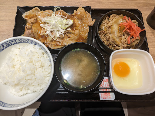あの吉野家がまぜそば出しただと!? 衝撃のニュースが世界を駆け巡りました。 めちゃめちゃ気になってましたが評判を聞いてからと一旦保留… 最近ネット見ると賛否両論、ならば直接食べて評価してみよう! 近所の吉野家に訪問。 こちらはガソリンスタンドと併設されてて駐車場も広い。 女性でも入りやすいカフェスタイルになってました。 昔のネットミーム、 「Uの字テーブルの向かいに座った奴といつ喧嘩が始まってもおかしくない、刺すか刺されるか、そんな雰囲気がいいんじゃねーか」 って、そんな感じが微塵と無くなってちょい寂しい(;^ω^) 『牛玉スタミナまぜそば』767円 を注文。 呼び鈴で呼ばれて取りに行き、食べ終わったら返却口に片付けるフードコートスタイル。 生卵とニンニクダレが別皿で提供、紅しょうがは自分で取りました。 いざ実食! 麺は縮れ中華麺、まぜそばと言えば太麺なので若干違和感… 以降、正直な感想ですがネガティブ発言なので注意。 麺が温くて水っぽい、魚粉で香り付けしてるけど塩っぱいが勝つ。 牛肉の存在感の無さはビックリ! ニンニクダレと紅しょうがを投入して味変。 ニンニクの香りはジャンクさ増すけど、味がひたすら濃くなって逃げ場がない… ご飯があれば投入するけど、追い飯としてより味を薄めたい。 これは完成度低いな〜 麺が全然マッチしてないし、魚粉とニンニクで味を作ってるけどバランスが悪い。 素直に牛丼をオススメします! しかし高くなったな〜並盛280円だった頃が懐かしい~