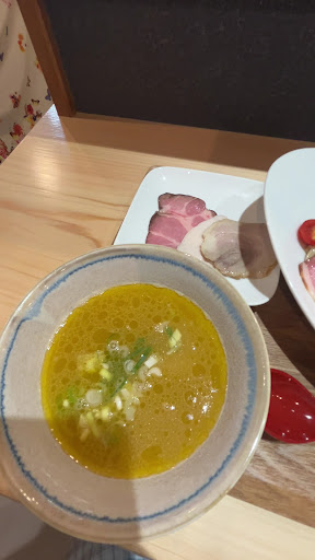 鶏白湯はつけ汁が濃厚すぎる🐔🐔🐔 塩分もかなり強くて男性向けの味付けかな。 最後のスープ割りは、食べ終えたミニ丼の 器に少しスープを移して堪能(笑)