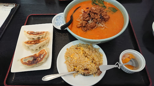 【とっても大味まったく美味しくない】 今日(9/28)、リニューアルオープンてことで、初見ながら行ってみました。 私は写真の『担々麺+半チャーハン+餃子3個セット』を注文。 でお値段は1000円ちょっと。 待ってる間に辺りを見渡すと、なんというか突貫工事とも思えない、『まあこんなもんでいいだろ』みたいな穴が天井に空いてます。 お座敷は家族4人でぴったりくらい。 でも成人男性には狭い。 入店する方々は建築関係の方が多いかな。