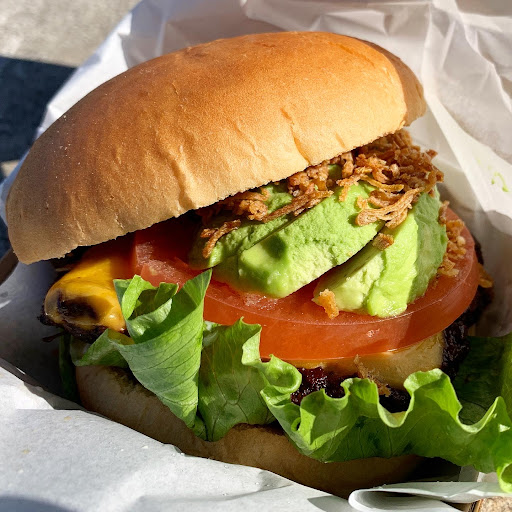 カリフォルニアバーガーはフカフカの バンズにビーフパティ1枚とチーズ アボカド、トマト、フライドオニオン レタス、ソースが挟まれています! ビーフパティは表面がカリッとなるまで 焼き上げられていてジューシーさは 控えめですが肉肉しい食感が楽しめます! ソースはクリーミーでややスパイシーも 感じる味わいで野菜の瑞々しさも相まって とてもバランスの良いハンバーグでした!