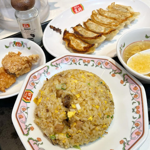 【餃子の王将 印西牧の原店】 • 餃子セット 1211円 (炒飯、餃子1人前、鶏の唐揚2ヶ、スープ) • にんにく激増し餃子に変更 +22円