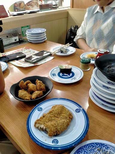 Read moreIt's a conveyor belt sushi restaurant. For each five plates of sushi you finish, you can play a little lottery game for small prizes such as magnets or badges. Lots of fun for the kids as the sushi you order comes out on a small bullet train. It's a little bit scruffy, but clean enough. The onion rings are pretty...