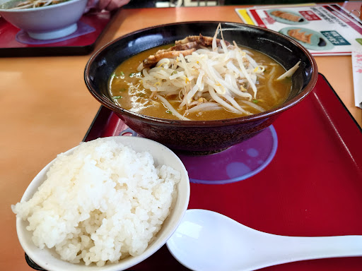 久々に来店。 前から気になっていたカレーラーメンの大盛り三枚チャーシューをトッピングで注文。 ツレは期間限定のラーメンを注文。メニュー名は忘れた😅 それと餃子とサービスライスを注文。 カレーラーメンは想像していたのはサラッとしたカレーラーメンのスープでしたが、意外にカレーうどん的なとろみがあるスープとは。 こういったスープはカレーうどんの方があっているかなと思った!けして不味くはないんだけどね。 食べてみないとわからないので注文してよかったです😀 ツレのはニラがたっぷりで熱々で美味しかったようです。 餃子は安定している美味しさです。 ご馳走様でした✨ やはり味噌系が一番好きなんだと実感しました😀