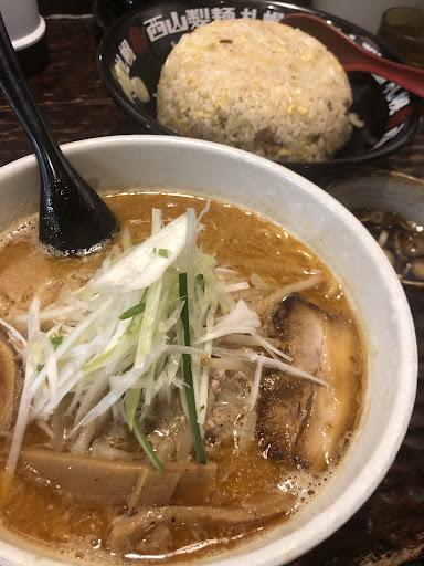 水を飲んで待っていると、続々とラーメン達が到着です✨ まずはスープを一口飲みます( ´∀`) んー美味しい(((o(゚▽゚)o))) 辛さ抑えたので、味噌ベースがピリ辛になった感じです☆ ネギもシャキシャキで食べ応えありますね(^▽^) チャーシューも元々の味付けもgood‼️ 北海道の札幌で有名な、西山ラーメンの麺も、スープによく絡んで美味しかったですね♪