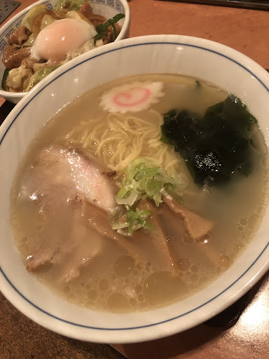 私のオーダーは以前から目をつけていた塩ラーメン(¥730)とミニホル玉丼(¥550)のセット。