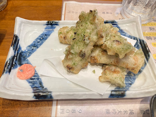 Read more●食事→普通に美味しい。ボリュームは飲みながら食べるのに適した量。ガッツリではない。 ●サービス→フロアの女性店員が態度悪め。ダウナー系(笑)って感じ。 気持ちを汲むなら最低時給程度の接客と考えるならそんなものかな? 飲食店の店長やってたけどその目線では無しの接客。 食器の置き方や接客が雑なのでテーブルは整理して広めに空けておいた方が良い。 あまり食器はさげてくれない。 着席段階で既にテーブルが汚れていた。 食事前におしぼりで手をふいて横に置いたら何かのタレがべっとり…気をつけた方がいいかも。 料理提供ゆっくりめ。ドリンク注文から15分程でお通しが運ばれてきた。 祝日だったから仕方ないかも。 個人的な願望、磯辺揚げの明太マヨもうちょっと欲しかったなあ… ●雰囲気→居酒屋らしい雰囲気。店内の提灯や飾りが雰囲気出てて良い。 カウンター席多め。テーブル席同士は距離が近め。 最高気温35度の夜に来ましたが、店内の冷房は効きすぎていないので冷たい飲み物が美味しい。