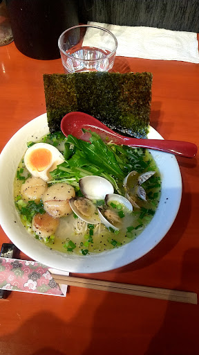 Read more以前から伺いたいと思ってたまたま時間が取れたので来店。週末土曜日の11時43分到着。入口前に小さめな段差が2段あります。15分程度の並びで店内へ。 テーブル席もあるのでグループでも伺えそうな感じでした。こちらは券売機はなく、食後会計タイプです。 すごい貝ラーメンと貝めしを注文。この日の貝めしはホッキでした。テーブルにはお水とコップ、ティッシュも設置してあります。 荷物を置く用に入れ物をいただけますが、カウンターなら机の下にも荷物をおけるスペースがありました。 注文から13分程度で着丼。食べている途中でラーメンが塩分強めなのでとサービスでお茶をいただきました。またラーメンに入っている貝の殻を入れる用の器もいただけます。