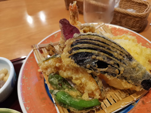 若竹膳3410円を頂きました。 お料理は籠盛りのお手軽懐石という感じ。美味しく頂きました。 この日の内容は 先付け3点盛り(青菜おひたし、謎のテリーヌと謎の魚の揚げ物) タコとワカメの酢の物 豚角煮 お刺し身2種小鉢 鶏の唐揚げかと思ったら白身魚の唐揚げ(骨が多いので気をつけて)小海鮮丼(酢飯)茶碗蒸し お吸い物でした。