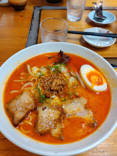 Read more昭和テイストを感じる🤣テーブル席は足を伸ばせる〝掘りごたつ式〟😁💕 ラーメンもメニュー豊富で、麺は太麺、細麺と選べ、麺の量も選べるので選り取り!! ラーメン以外にも唐揚げ定食や牛ホルモン定食などもある!! 坦々麺も辛口、中辛、注文する人も多かった☺️ 焼肉も🥩🔥注文でき、夜は酒も飲める!! この地区はラーメン屋さん激戦区!! 目の前が人気No.1のラーメン処力なので、メニュー豊富にして対抗しているのでしょうね!! 私はこの日、にんにくラーメンを所望!!とにかくニンニク風味が凄く、メニュー通りの一品と感じた☺️帰る途中、坦々麺注文のお客さんの麺を見たが、真っ赤っかでしたね😁💕そち...