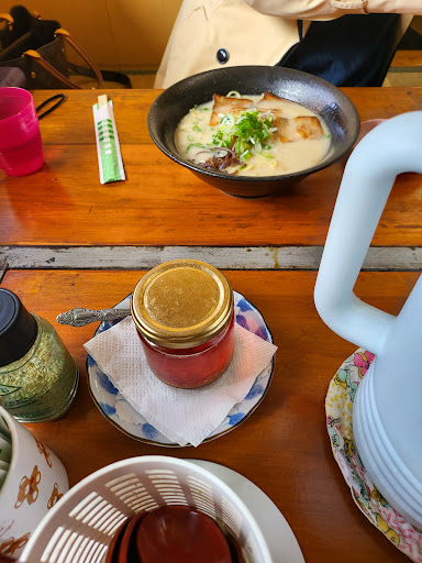 結構年季の入った昔懐かしい雰囲気のお店です。 鹿児島のラーメン店ではお馴染みのサービスの大根のお漬物は刻み昆布も入っておりさっぱりしててとても美味しいです。 今回はここのクチコミでも人気のあるにんにくラーメンをいただきましたが、これまで食べたにんにく系のラーメンの中でもこちらのお店のラーメンが一番にんにく要素が強くて、にんにくが大好きな私は大満足でした。 素の状態でもにんにくチップがたっぷりでかなりにんにく感は強めなのに、このラーメンは更に小皿に乗ったすりおろし追いにんにくが付いてきます。 私はその追いすりおろしにんにくまでありがたく入れさせて貰いましたが、当然刺激が強めになるのでお腹が本調子じゃない方は控えておいた方が良いかもしれません。 伺ったのは三連休の初日の13時頃でかなり込み合っていましたが、ラーメンは注文してから15分程度で提供されました。 終始女将さんがにこやかに対応してくださり、総合してとても印象の良いお店でした。 伊佐市方面に来たらまた絶対伺います。 ...