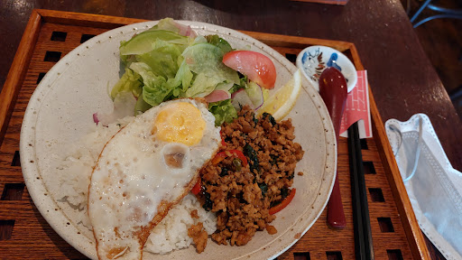 ・グリーンカレーは店主のお勧め通りで美味しい! 口にした瞬間甘さが広がり続け様にカレーの辛さが良かった! ・ガパオライスは香草の香りも効き、挽肉も粗挽き感があって箸が進みました♪(ご飯の量もう少し多目で欲しかった😅) ・カブはお芋みたいな食感でとても美味しかった♪