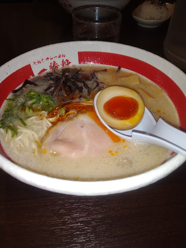 Read moreここラーメンのおすすめは、とんこつラーメン、魚介ラーメンですね。 とんこつラーメンは、あっさり系のとんこつラーメンでとんこつの臭みは無く、とんこつの独特の風味、甘味があり、美味しいですよ。 魚介ラーメンは、ベースとしては、とんこつスープで魚介のエキスのタレがかかっているんですけど、これが、とんこつスープとあいまって、美味しいですよ。 とんこつの風味、甘味と魚介の風味があいまって、なんとも言えない味ですね。 一回食べた方が良いと思いますよ。 ここのスープは、とんこつスープが基本ベースになっていますよ。 替え玉は、普通のところは、100円から150円ぐらいするんですけど、ここは、50円と格安で財布にもやさしいですよ。 あとは、餃子、唐揚げ、チャーハンは、おすすめしますね。 餃子は、肉の独特の風味と野菜の甘味が、あいまって、なんとも言えない味付けでしたね。いくらでも食べられますね。 行った時は、頼んだ方が良いと思いますよ。 唐揚げは、外はカリカリ、中はジューシーさがあり、美味しいですよ。 チャーハンは、半チャーハンを頼んでも大盛りチャーハンにでき、お得感バッチリですね。 味も町の中華料理屋みたいな味付...