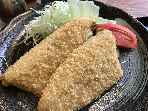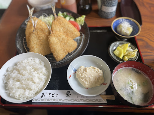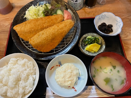 Read more長崎の諫早市に出張の折 ランチタイムにお伺いしました。 店内はカウンターと小上がりが3席。 ランチメニューの中からオススメの アジフライ定食(700円)を注文。 大きめのアジフライが4尾にタルタル、魚出汁白味噌の味噌汁、自家製漬物とデザートでコスパ抜群! アジフライはさすが!臭みも全くなく揚げたてでふっくらほっこり 小さいから4尾なんですと、店主が仰ってましたが、大きいのはどの位のサイズなんだ‼︎ 味噌汁も魚出汁が聞いておりほんのり甘い白味噌風味。漬物も自家製。デザートのスイートポテトも手作りで甘すぎず丁度良い! 駐車場も完備しており、夜に再訪してみたいお店です◎接客も店主、若店主、奥さん皆さん感じが良くて文句のつ...
