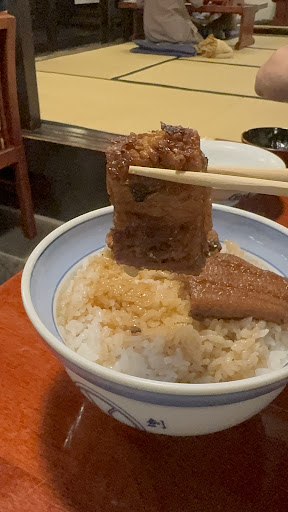 鰻は身も厚くふっくらとし 香ばしい皮で激うま 皮と身の間の脂が抜群でした。 蒸されてるけど蒲焼き?といった感じの鰻です ご飯の間にももう一切れ入って合計4切れと大満足