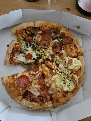 Read moreまず40センチサイズのピザを頼んで楽しみにして帰っだんだけど、中身開けたらスカスカのワンランク小さいピザが入ってて家族みんなが小さい😱とビックリしてた。 サイトで調べて見ても箱に対してギリギリくらいまでのサイズです! 騙された感半端ない!お金は40センチサイズの金額払ってます! あと、アプリではなくてサイトからのメニュー表見てからアプリのテイクアウトでいざ注文しようとしたらメニュー表の倍の値段になっていて半額でサイトのメニューの値段で販売してました!! サギ感半端ないお店でした。 ...