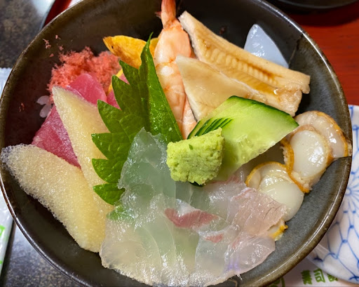 Read more喜々津に昔からある寿司屋さん。寿司屋さんだけどちゃんぽんもあって、一番人気のようです。 写真はあら炊き定食です。お昼の定食は8種類?くらいあって、価格は1300円です。ここ数年で数百円値上がりしたのは仕方ないですね。 あら炊き定食、家庭ではできないとろみのある煮汁にブリのアラがよく合っておいしいです。ご飯大盛でしたが、あら炊きの味の濃さでぺろりと完食できました。味噌汁はアラ出汁がきいてよいお味です。茶碗蒸しは、ぬるく作り置き感がありました。 この日は休日で、11時30分くらいにいきましたが、ほぼ満席状態。私たちの後のお客さんは、待ちになっていました。お客さんが多いからか、厨房もフロアも多忙感があり、ややイライラ感がありました。 お客さんの注文は、ちゃんぽん定食、ちらし寿司定食、あら炊き定食がよく出ていました。 味、ボリュームは合格ですが、コスパを考えると……。妻と子供が食べたちらし寿司定食もとて...