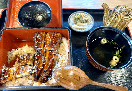 私はうな重(四切れ)を注文。 写真は食べ始めて慌てて撮りましたが、ある意味わかりやすいかとw うなぎは、表も裏もパリッと焼けており、中はふっくら✨なので、お箸でサクサク切れます。 基本、タレは薄づきできますが、醤油差しに入った別添えのタレが付いてくるので、自分の好みでいただけます🥰 写真のように、一切れを4つにカットして(食べかけでごめんなさい🙏)、スプーンで食べる方が、口に運びやすいかと思いました。 加えて。 家族に魚嫌いがいますが、ここの肝吸いは全く臭みがなく、美味しいと言ってます✌️ また、ミルで挽く大村産(マジで!?)の山椒との相性がとても良い😍 うなぎの甘さを引き立ててくれるので、嫌いでなければ、ぜひ振ってくださいませ。