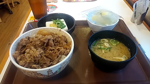 Read more普通のすき家です。 諫早警察署方面から来店する場合は、かなりギリギリにならないと看板が見えないので見逃す可能性があります。一番左の車線を走っておくのをおすすめします。 片側2車線の交通量の多い国道沿いにあり、特に通勤時間帯は反対車線(島原方面から来店する場合)から入るのが難しいです。ドライブスルーが割といつも混んでいるので車が入り口から溢れてしまうことがあるのですが、そういう場合は反対車線から入るのは絶望的です。面倒ですが、市街地方面に入って出てくるかまたは安全にUターンできそうならUターンして左折で入れるようにする方が結果早いと思います。 上に書いたようにドライブスルー利用の車で入り口がブロックされてしまう事があり、その場合はイートインも待たな...