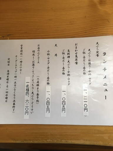 Read more身内の口コミに注意して! お金捨てるつもりならいってみては? リピーターなんていないはず! 伊勢の天ぷらはこんなもん? と思われることが悲しい! 3年ぶりに行くことになってしまい仕方なく 来店しましたが、 輪をかけてひどくなっていました! こんな事言いたくありませんが 素人より酷いこれでよく天ぷら店ののれんを出しているかと不思議でたまりません! 衣はカチカチで中身が何かわからないほどの量 油が半端なく古いのでしょうベトベトで色も茶色です! 周りのお客さんも一口食べてやめてました! 日本一不味い天ぷら店といっても絶対に過言ではないはずです! もう一つあります! 鳥釜飯ですが炊き上がりにビックリです これってリゾットかお粥? 水の量間違えるのもほどほどにしてほしい こ...