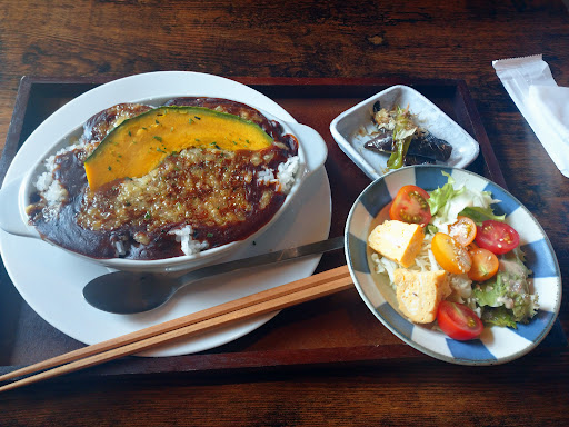 Read more朝食とランチメニューがあります。ボリュームたっぷりで、サイドディッシュもいくつか付いています。スパイシーグリルカレーセットを注文しました。個性的で美味しかったです!コーヒーも美味しいです。お値段もお手頃で、セットメニューにはデザートも付いてきます。 営業時間は火曜日から金曜...