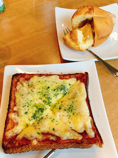 サイドメニューのトーストは200円でピザトースト、厚切りトーストバター付き、クロックムッシュ風の3種から選択可能。 マフィンも200円、マーマレード、チョコ、バナナ3種から...
