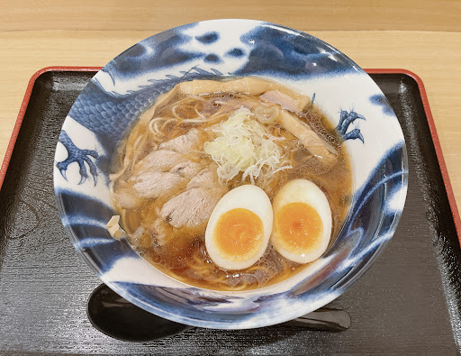 Read more以前から気になっていた麺狂道さん、初訪問してみました。初回なので基本の醤油ラーメン880円➕替え玉150円を注文。 替え玉はストレートとちぢれ麺を選べるのでちぢれ麺を選択。 スープはあっさり系で飲みやすい。出汁もそれなりに効いている、主張が少なめだけど飽きが来ないので良いです。 チャーシューは低温でじっくり入れしてあるので柔らくしっかりと旨みが出ていて良かったです。 ここまでは期待に応える素晴らしい仕事でした。 ただ、どうしたんだろう?麺が残念。 茹で時間が短すぎで芯が残っている。硬めが好きな自分は許容範囲だが、硬めを注文してないのにこの状態だと、客を選びそうです。替え玉のちぢれ麺も同様、麺の扱いがレベル低かったです。 あと、そもそも麺がスーパーで売っている生麺(これも最近は十分美味しいけど)レベルです。麺に対する拘りが感じられない。