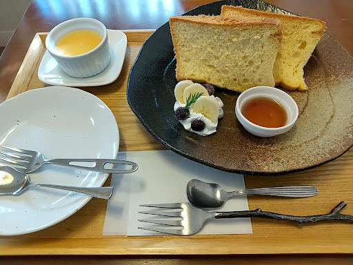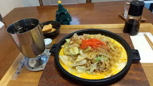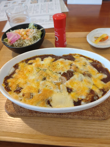 お店の前をいつも通るのですが、一度もお邪魔したことがありませんでした。 今回は少し遅めのランチでお邪魔しましたが、まだまだ賑わっていました。 お店の横に駐車場もたくさんあり助かります。 こじんまりとした構えですが、店内は広くてなかなか良い雰囲気でした。 ついつい長居をしてしまいそうな居心地の良さがあります。 スタッフの方も良心的でホッとできます。 ワンコインのメニューや日替りのランチもありました。 今回はグリルカレー(サラダ付き780円)とシフォンケーキ(550円)を注文しました。 グリルカレーは、カレーの上にたまごとチーズをのせてグリルされた熱々をいただきます。 美味しいのですが、最後の方は飽きてしまいました。 プチサイズもあるので、それでも良かったかなと思いました。 シフォンケーキは思っていたよりも大きく、食後に一人で食べるには多いように思います。 シフォンケーキを使ったメニューもたくさんあるだけに、なかなか美味しかったで...