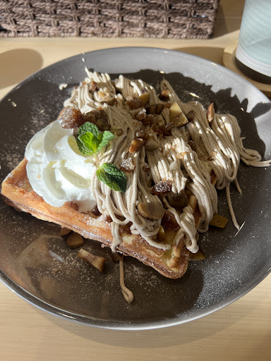 Cozy cafe tucked away in the middle of nowhere. It’s a little out of the way and a little pricey but everything is made fresh and handmade. The marron/chestnut waffles were delicious, crisp but chewy, very tasty - would absolutely go for more. The cafe also has a lovely ambience and interior furnishing, and the service is also careful. The staff are also happy to speak minimal English if that’s a requirement for anyone. Well worth checking out for the waffles and would love to come again for the...