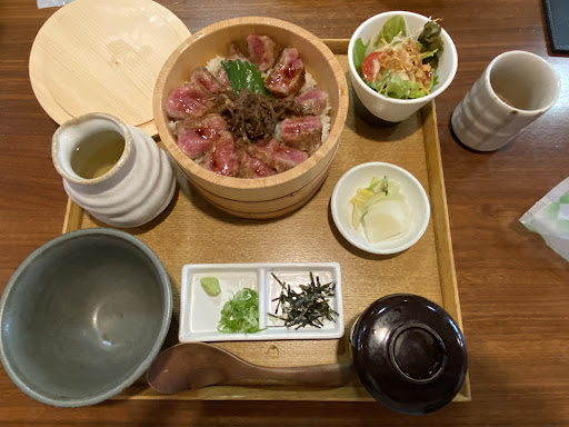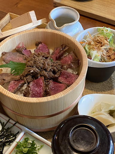 Nice steak restaurant. We liked the regular Wagyu and the Mie Prefecture Wagyu; however, I felt sorry for the staff. It was Saturday lunch time (12:30~13:30) and it was busy to the point that we had to wait for like an hour and when we finally got a table, we realized that they had 1 waitress in charge of the whole place!! WTH?? She was at the regi getting payments and dealing with the exchange, she was cleaning the tables after customers left, and was serving dishes to everyone. I’ve work in restaurants before and I know how hard it gets, doing this much alone is waaaaayyyy toooo much! I would give them a higher review but, I feel really sorry for the staff! Even during the pandemic I highly recommend to have at least one more waiter...